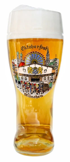 1 Liter Glass Beer Boot with Bayern Lion crest and Bavarian coat of arms. Reads “Bayern” (Bavaria).
