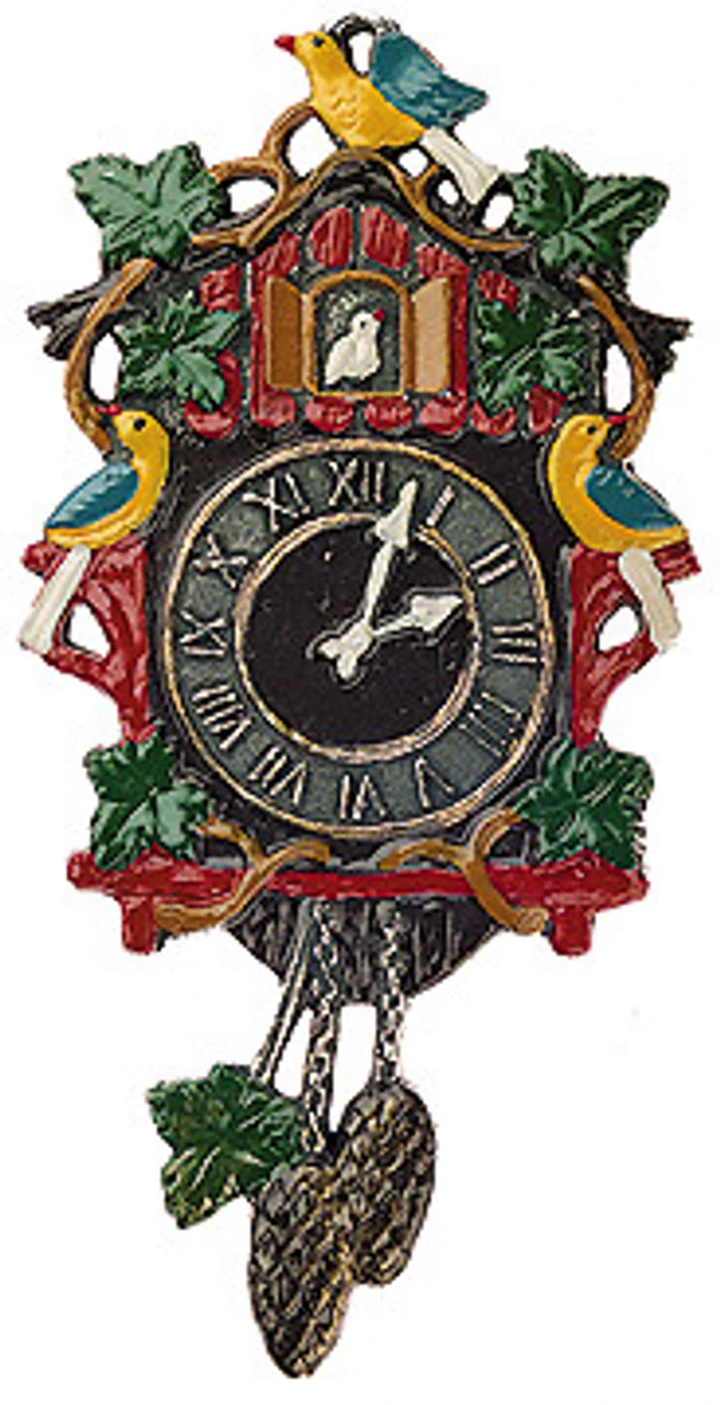 This pewter Christmas ornament features a traditional German Cuckoo Clock.