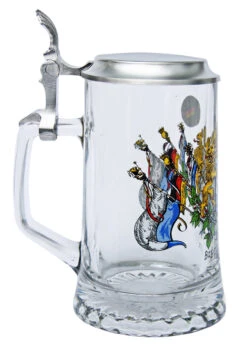 Glass Beer Stein With Plateau Pewter Lid And Hop Cone Thumblift