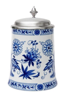 Zimmermann Birds And Flowers Porcelain Beer Stein With Pewter Footed Base